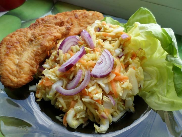 Ez a recept egy könnyen elkészíthető és egészséges étel, amely remek választás egy gyors hétköznapi ebédhez vagy vacsorához. Az ízek jól harmonizálnak, és a ropogós csirke, a friss saláta és a savanykás káposztasaláta tökéletesen kiegészítik egymást.