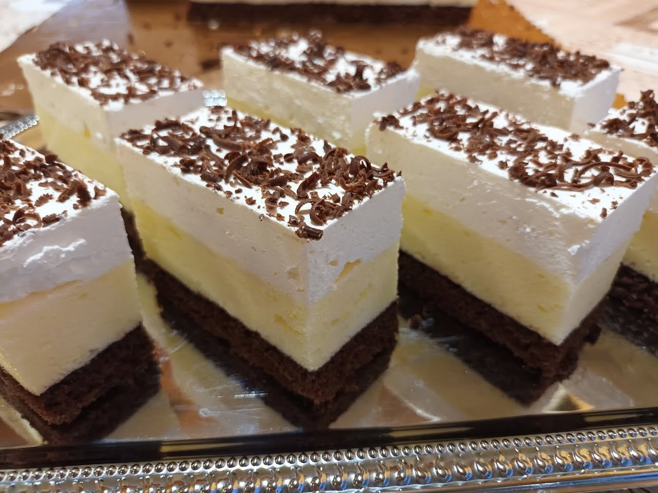 Az amerikai krémes egy igazi klasszikus desszert, amely sok családban ünnepi alkalmak, vasárnapi ebédek vagy baráti összejövetelek elmaradhatatlan süteménye. Könnyű kakaós piskótája, lágy vaníliás krémje és habos tejszínhab teteje harmonikus egységet alkot, amelyet egy kevés reszelt csokoládé tesz még ellenállhatatlanabbá. Ez a sütemény nemcsak finom, hanem látványos is, így tökéletes választás vendégvárónak vagy ünnepi desszertnek.