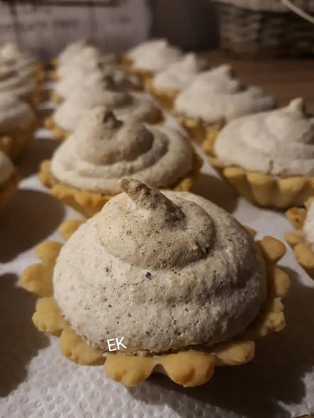 A lekvárra halmozzuk a diós habot. Ne sajnáljuk a tölteléket, mert a sütés során szépen megemelkedik és a kosárkákba tökéletesen beleolvad. Egy evőkanál segítségével egyenletesen osszuk el a habot, ügyelve arra, hogy a kosárkák minden sarkába jusson belőle. - Sütés: