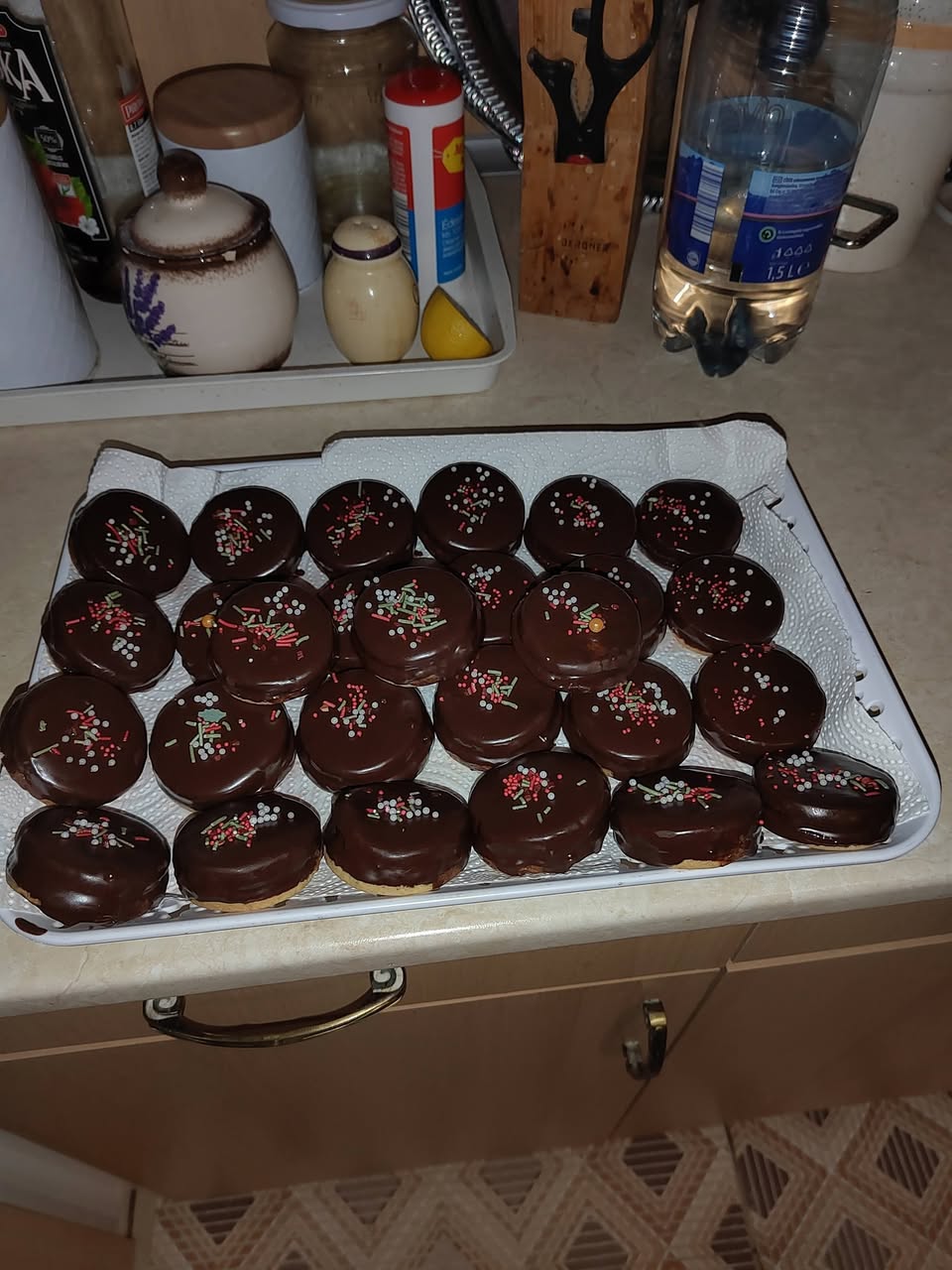 Miután a kekszek teljesen kihűltek, kenjünk egy vékony réteg csokoládét az egyik keksz oldalára. Ezután helyezzünk rá egy másik kekszet, így szendvicset alkotunk. Az így elkészített keksz tetejét kenjük meg bőven a maradék olvasztott csokoládéval. A csokoládé réteg vékonyan borítja a sütemények tetejét, így azok szépen fénylenek majd.