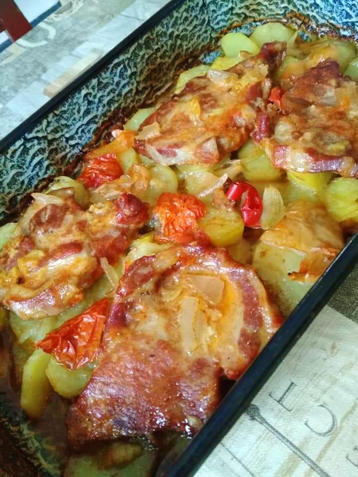 Ez a krumpliágyon sült fokhagymás tarja egyszerű, házias, mégis különleges fogás, amely a megfelelő alapanyagokkal és fűszerezéssel igazi ünnepi ételként szolgálhat bármelyik családi asztalon. Jó étvágyat! 🥔🥩🌿