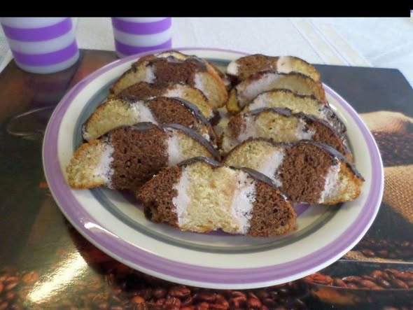 A felezést mérleg segítségével végezzük, így biztosan egyenlő méretű rudakat kapunk. A kakaós tésztát egy evőkanál vízzel is hígítjuk, hogy a kakaó ne sűrítse túlzottan a tésztát, így könnyebben dolgozhatunk vele. Miután a tészták készen állnak, kivajazott és lisztezett őzgerincformába öntjük őket. A kétféle tésztát egyesével sütjük meg. A sütési hőmérsékletet 180 fokra állítjuk, légkeveréses funkcióval, és 18 percig sütjük a tésztát. Ha nincs légkeverés, a sütési idő kicsit hosszabb, körülbelül 22-25 perc.