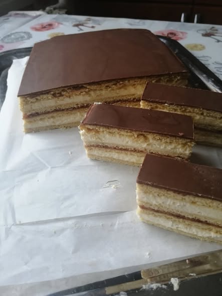 A mézes zserbó másnapra az igazi: a lapok megpuhulnak, a krém összeér, és gyönyörűen szeletelhető.